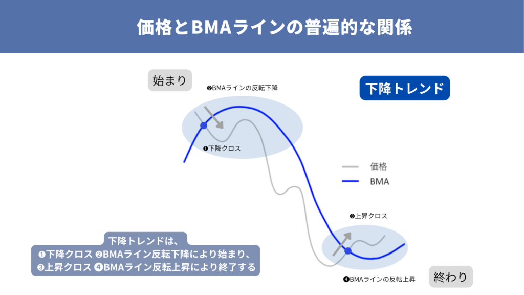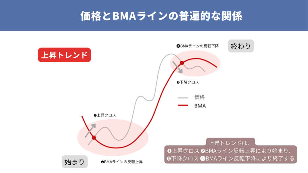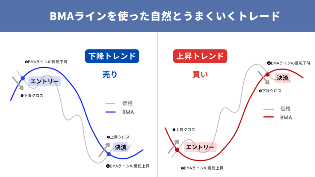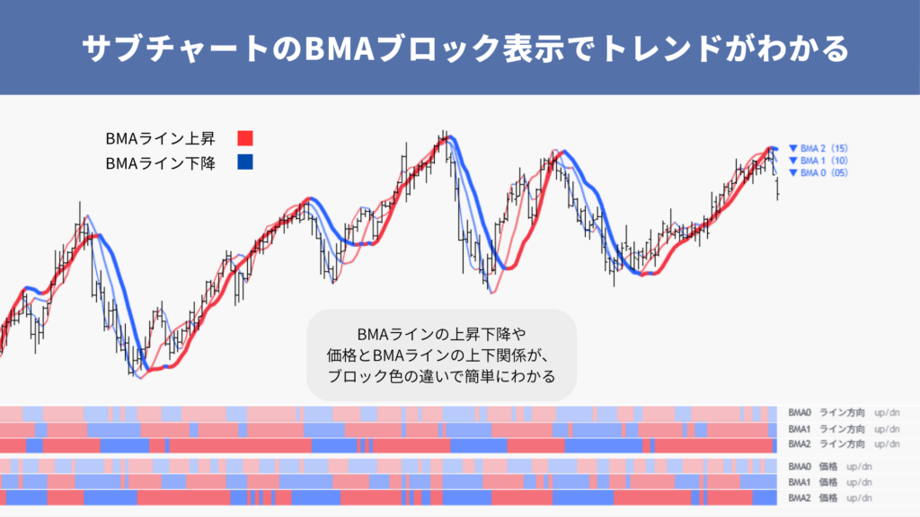 - トレンド反転が視覚的にわかるBMAラインのクロス